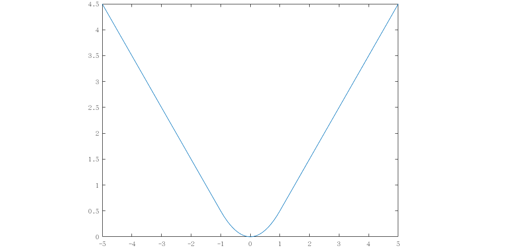 当 \(k=1\) 时,Huber 核函数的图像如下图所示。